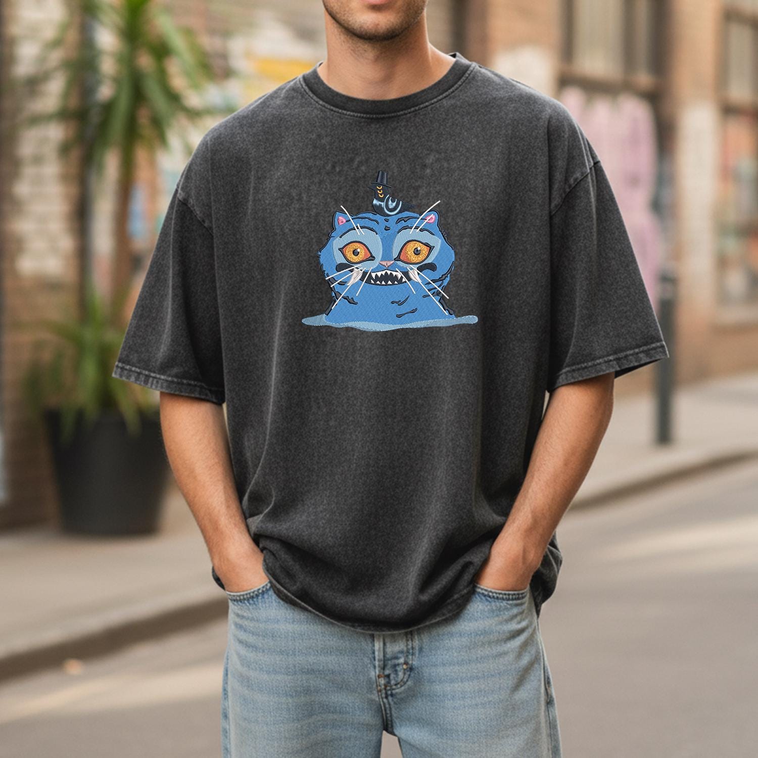 Cat And Bird Demon Hunter Embroidered Retro Wash...
