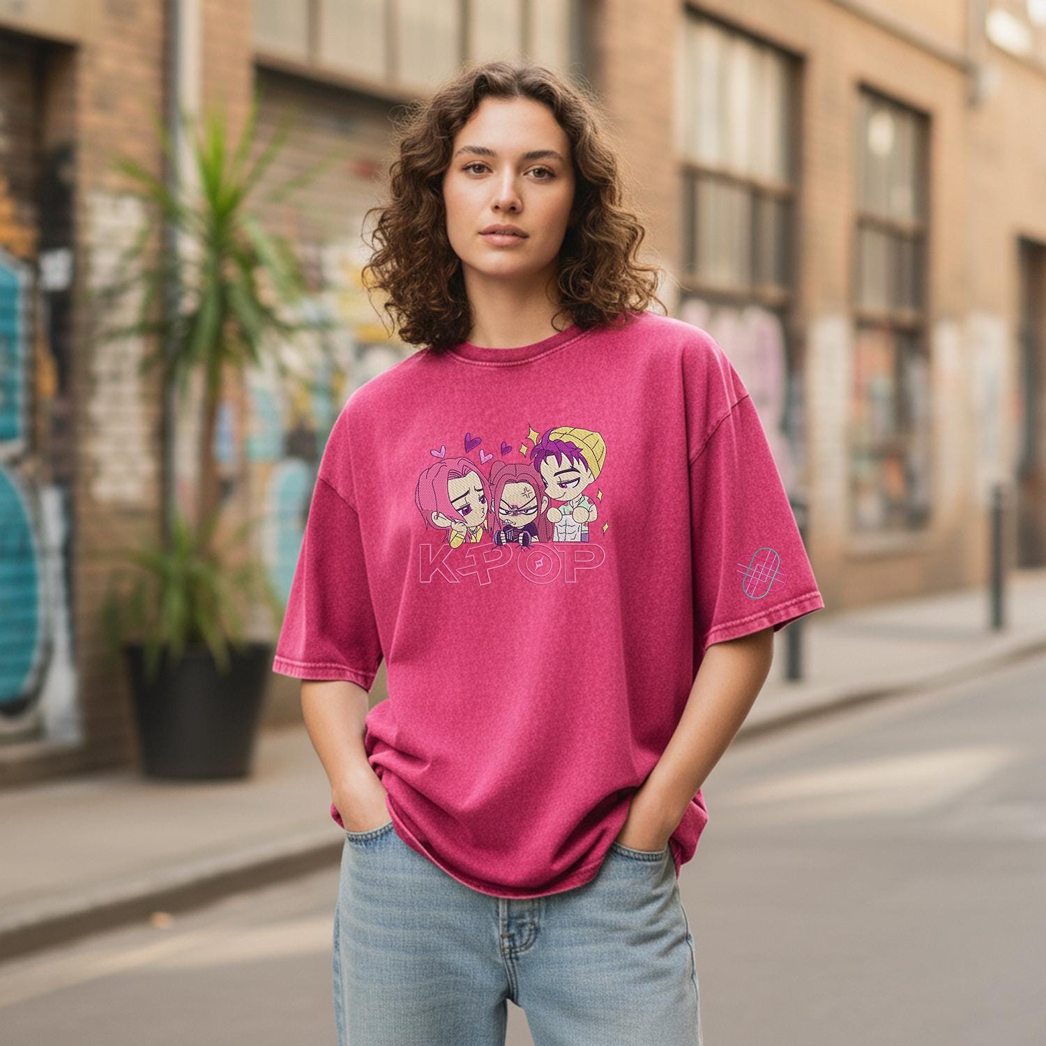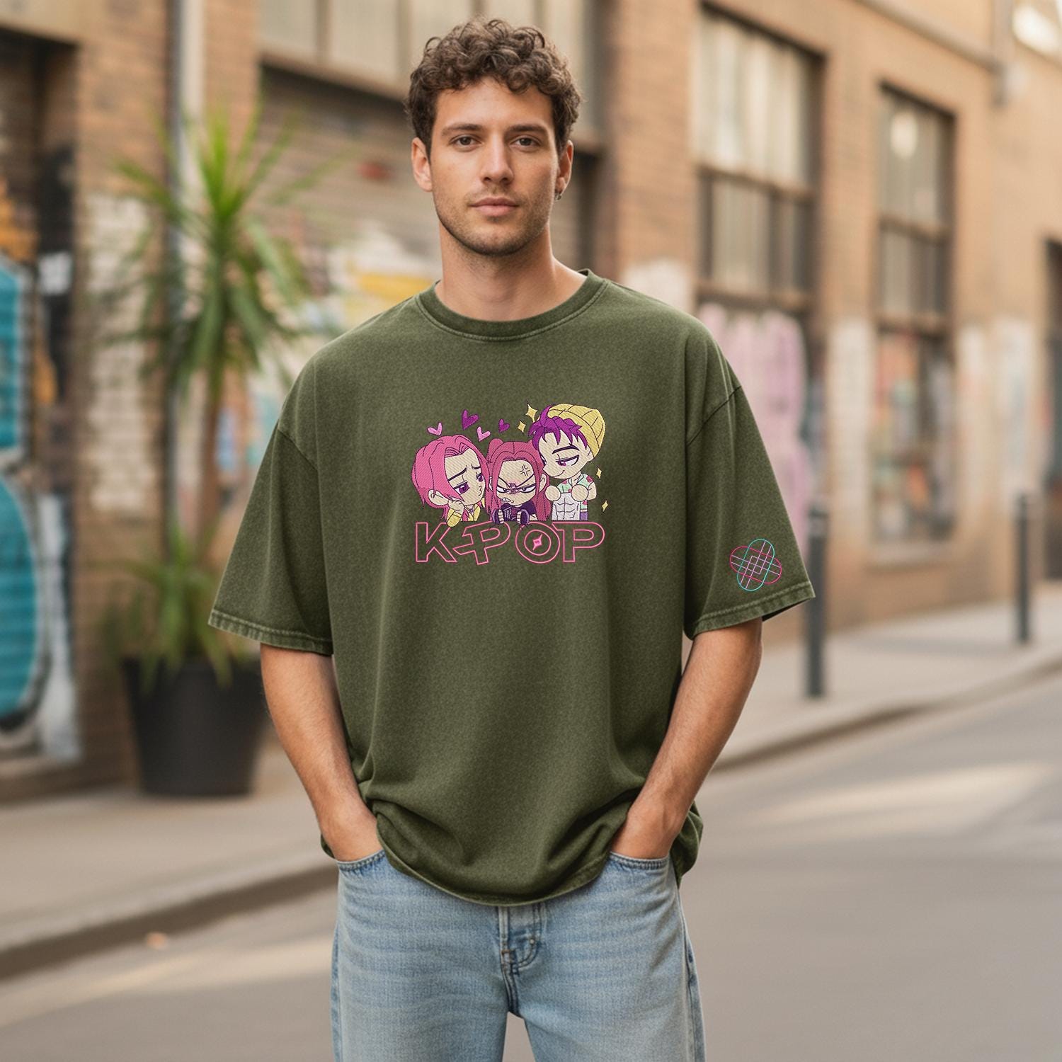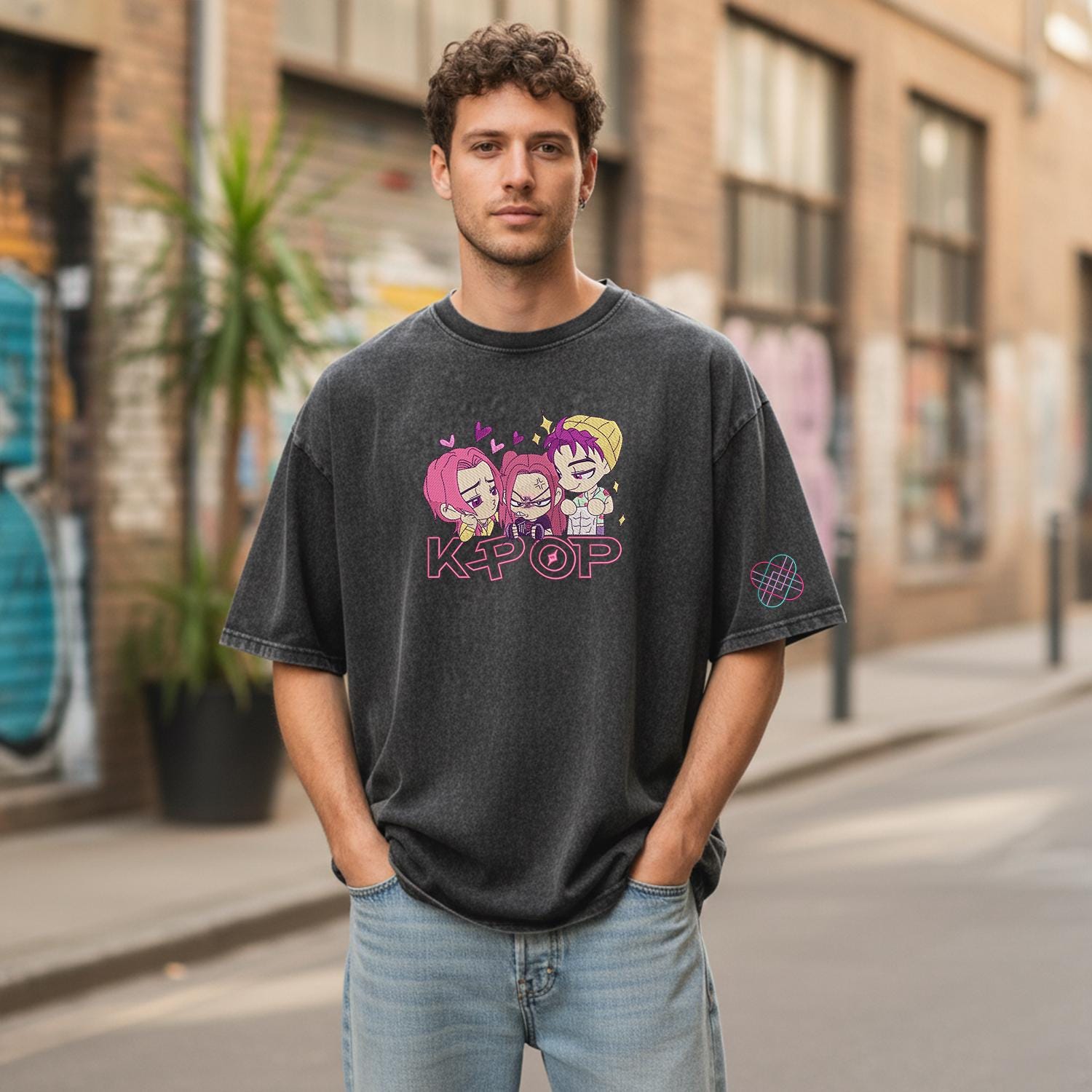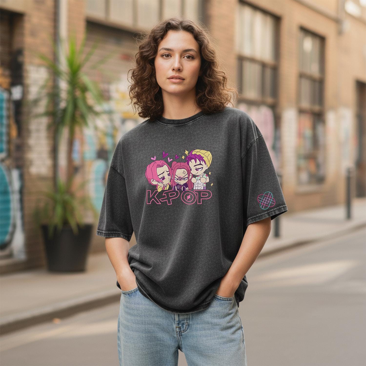 Huntrix KPOP Band Embroidered Retro Wash Cotton Shirt, Demon Hunter, Kpop Demon Huntrix Gift Gift for Huntrix fans, Gift for Huntrix fans