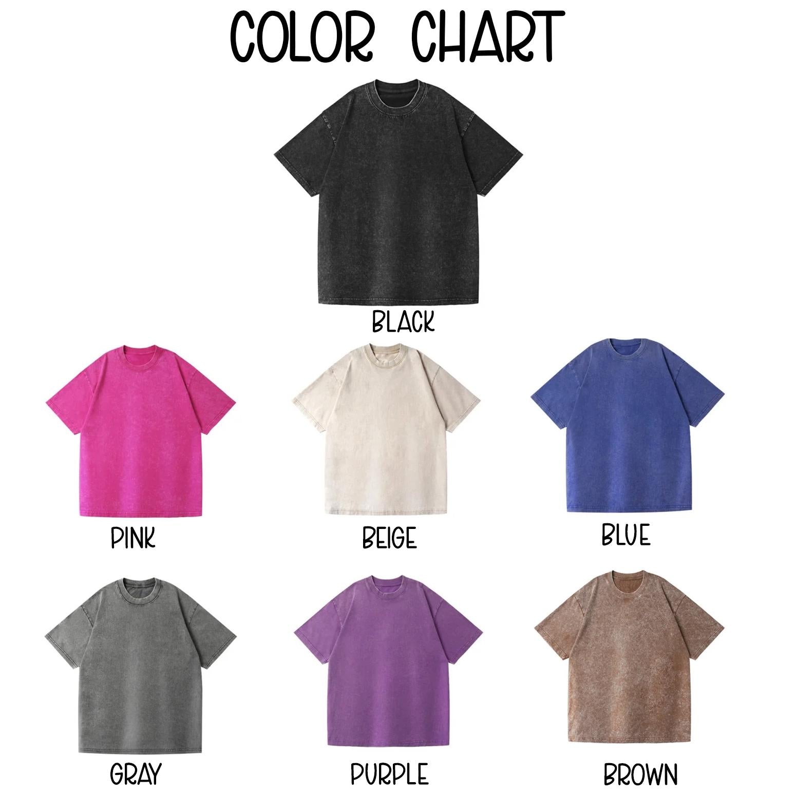 SIZE GUIDE Unisex fit, runs true to size. For the best fit, take one of your favorite sweaters and compare it to our size chart. Measurements are listed in inches. Please allow for a ±5% variation due to manual measuring and the production process. MATERIALS 100% Cotton Fabric Vintage Washed Loose Oversized Fit Streetwear Long-lasting construction to help keep its shape and vibrant color after many washes Note: Colors may look slightly different in person depending on your screen’s brightness, contrast, and settings. CARE INSTRUCTIONS For glitter designs: Hand wash gently and avoid rubbing the glitter against other fabrics to prevent wear. Wash inside out. Place in a laundry bag for extra protection. Machine wash cold on a gentle cycle. Do not wash with rough items or pieces with hooks/zippers. Tumble dry low or hang to dry for best results. REFUND & REPLACEMENT POLICY As each item is made-to-order, returns or exchanges are only available if the product has a manufacturing defect or mistake. Refunds/replacements are not available for buyer errors (e.g., wrong size, color, or design choice). Please review your order carefully before checkout, or contact us right away if it hasn’t gone into production yet. ESTIMATED DELIVERY TIME Processing time: 3–5 business days Standard US shipping: 5–7 business days All products are made and shipped from the USA If you need your order by a specific date, reach out—we may be able to offer a shipping upgrade.